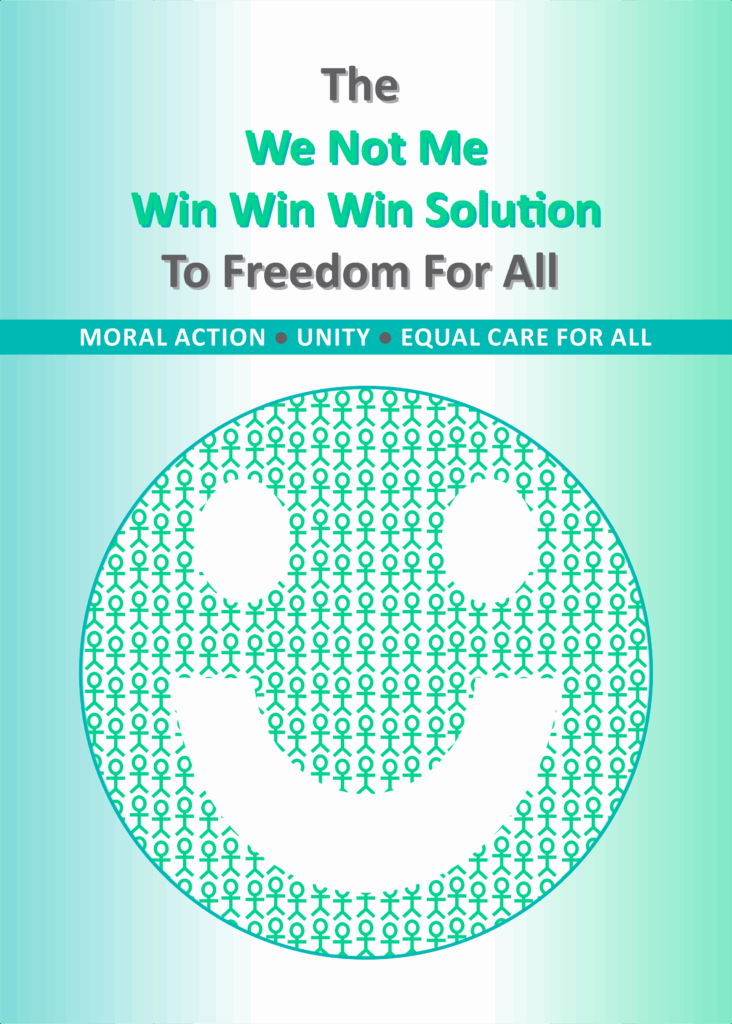 The We Not Me Win Win Win Solution To Freedom For All is also a free, continuously updated Manuscript and Medium for everyone to get involved and create the perfect We Not Me Win Win Win Solution for a peaceful transition to an All-Caring World that benefits everyone equally.